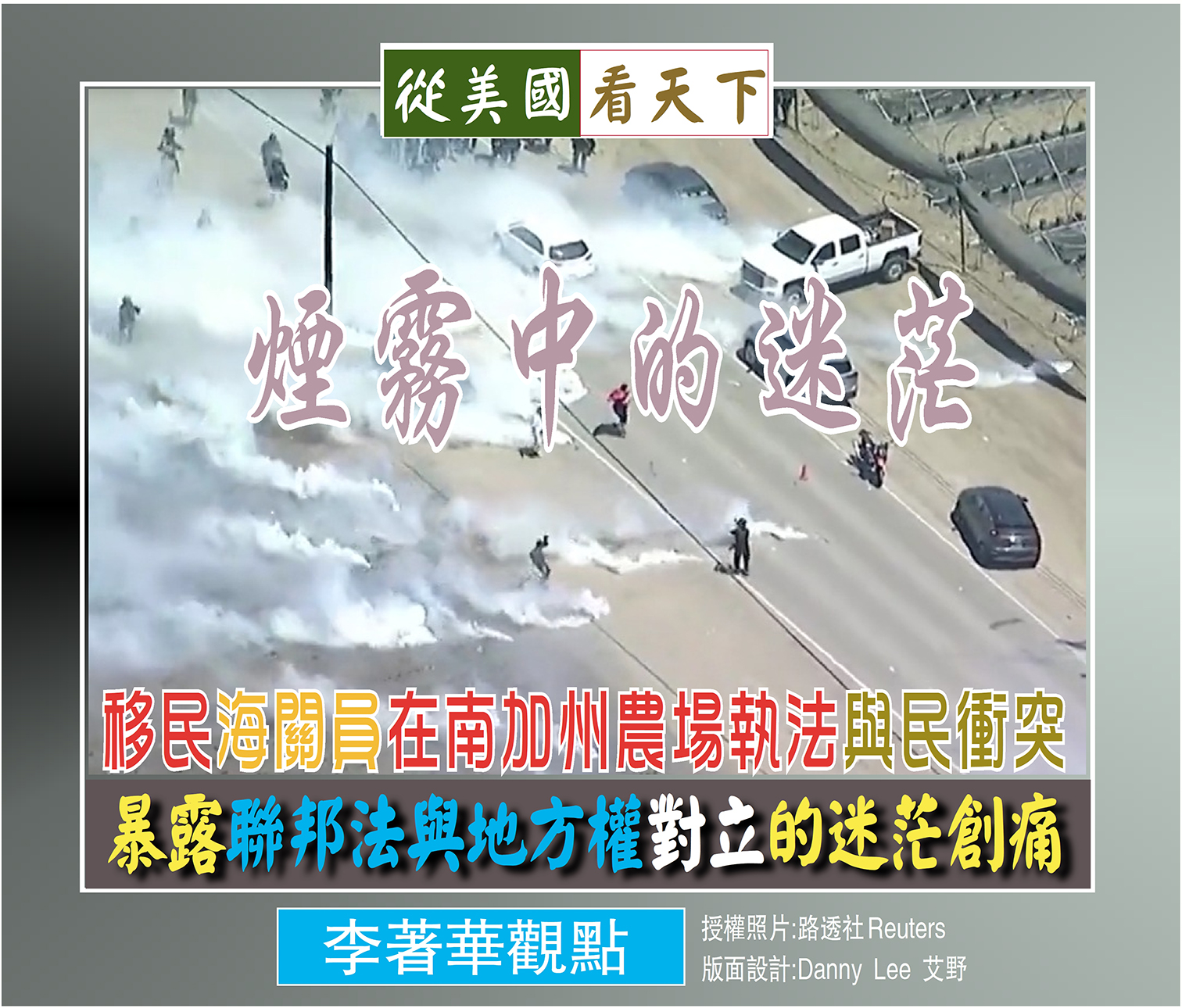 聯邦移民及海關執法局(ICE)人員日前在前往南加州文圖拉郡(Ventura )一處大麻農場執行刑事逮捕令時迅速演變成一場與抗議民眾之間的激烈對峙,聯邦人員疑似向人群投擲催淚瓦斯,導致煙霧迷漫,多人出現呼吸困難,隨後民眾撥打911報警,加州政府指責聯邦政府執法失當,直接暴露出聯邦法與地方權對立的迷茫創痛。
