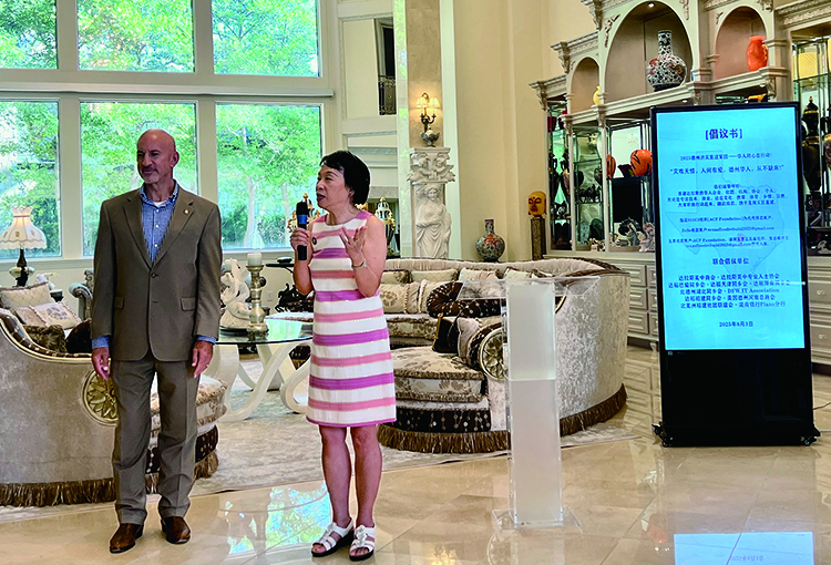 達拉斯美中商會會長李曉霞和美中專業人士協會主席閻光分別致辭感謝陳芃和杜珏為德州洪災籌款所做的貢獻,對華人社團強壯的組織領導能力大加讚賞,也肯定了社團間團結協作的重要性。
