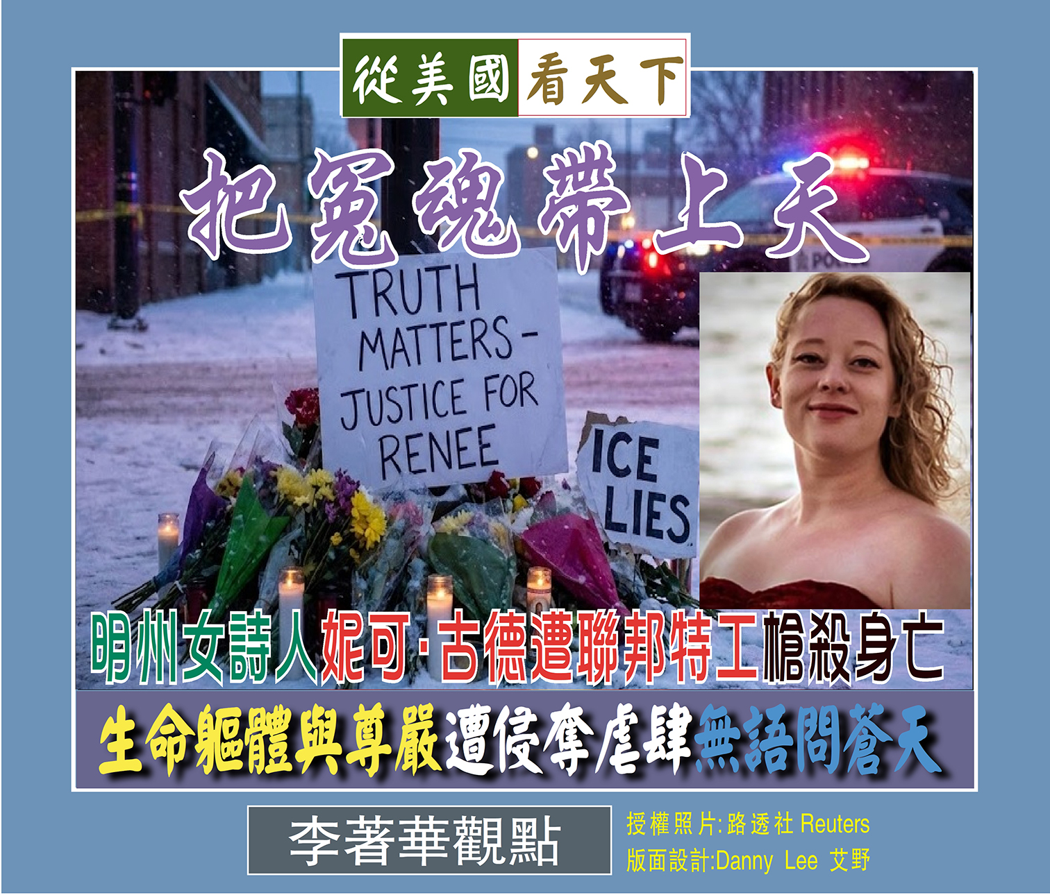 在這場聯邦與地方、謊言與真相的血腥對撞中,最大的輸家是美國的靈魂。這顆子彈射穿了古德女士的擋風玻璃,也射穿了美國社會僅存的互信與良知。群眾在街頭高呼「ICE滾出明尼阿波利斯」,這是對威權式執法的絕望怒吼,也是對法治淪喪的沈痛抗議。我們正站在一個危險的懸崖邊,若不能制止這種將同胞視為寇讎的瘋狂,若繼續容忍公權力以「國家安全」為名行武力威嚇之實,那麼明尼阿波利斯的雪地將不會是最後一片被鮮血染紅的土地。