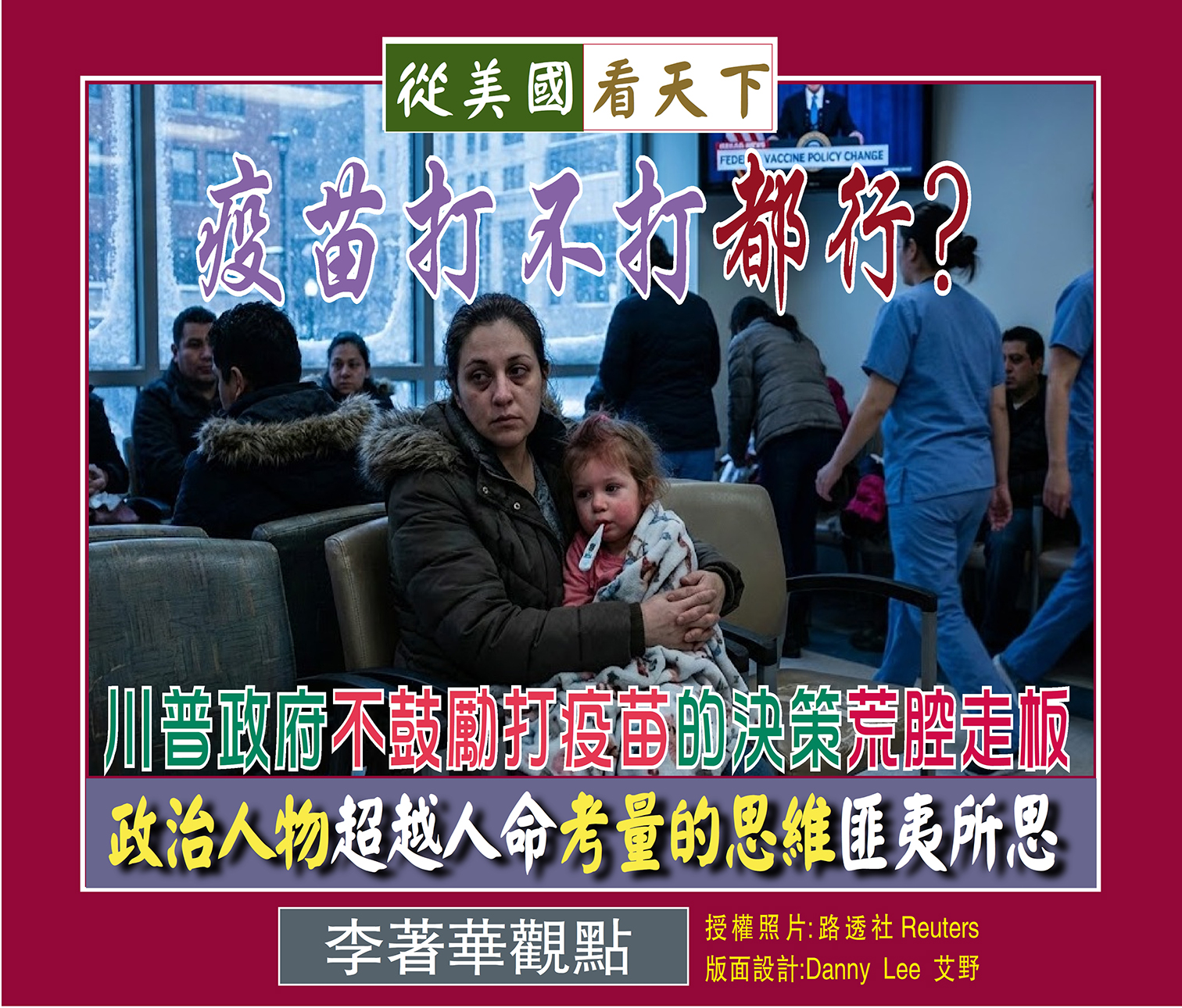 就在伊州疫情急遽升溫之際,由川普政府及衛生部長小羅勃·甘迺迪主導的聯邦衛生主管機關,竟拋出了一枚震撼彈:正式取消針對兒童接種流感、新冠及呼吸道融合病毒(RSV)疫苗的全面建議。這項決策將疫苗接種從「標準公共衛生指引」降格為家庭與醫生間的「共同臨床決策」。在官員們高談闊論要將美國疫苗政策與國際接軌、導正所謂「過度醫療」的同時,我們不禁要問:在病毒肆虐的當下,這究竟是科學的修正,還是一場拿孩子性命做籌碼的政治豪賭?