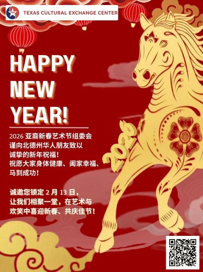 2026年2月13日(星期五)由德克薩斯文化交流中心(TCEC)  暨UTD亞洲研究中心,Harry W. Bass Jr. School of Arts, Humanities, and Technology再次攜手主辦的「亞裔新春藝術節綜藝晚會」,這場備受期待的新春盛會,匯聚多元亜裔文化與藝術的精華,旨在透過音樂,舞蹈及藝術的交流,讓觀眾在歡樂喜慶的氛圍中,一同迎接嶄新的農曆新年到來。