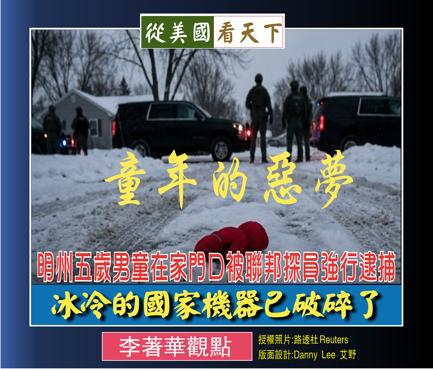 當明尼蘇達州的凜冽寒風捲起街角的枯葉,杜牧古詩中那「稚子牽衣問,歸來何太遲」的溫情場景,在這裡卻被生生撕裂。一名年僅五歲的男童在家門口還來不及等候家人歸來,就被聯邦探員強行帶走,這一幕如同一記沈重的重錘,狠狠敲擊在美國社會脆弱的道德神經上。這不再僅僅是一則關於邊境管控或移民執法的單一社會新聞,而是一面殘酷的道德稜鏡,折射出當前美國在面對日益嚴峻的移民危機時,國家機器運作的冰冷與人性溫度的喪失。這起事件引發了激烈的價值碰撞,不僅讓在地社區陷入深層的恐慌,更讓原本標榜人權燈塔的美國,在國際舞台上面臨著前所未有的靈魂拷問。我們被迫直視一個令人痛心的現實:在追求所謂的「國家安全」與「法治秩序」的宏大敘事下,一個無辜孩童的破碎童年,竟成了必須被犧牲的代價;我們看到了一場關於法治精神與人道底線的深刻博弈,這是一場沒有贏家的拉鋸戰。