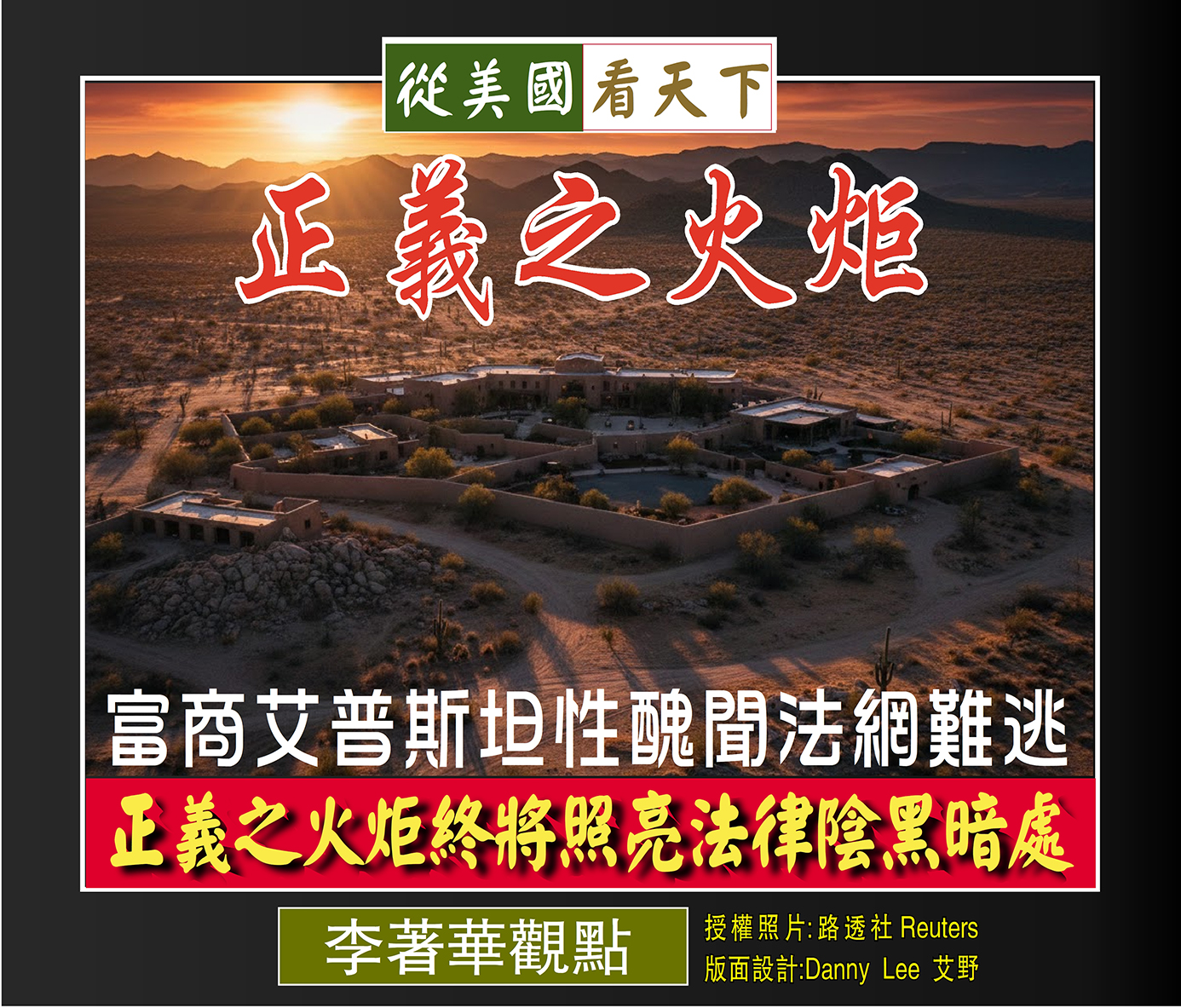 這場調查的意義遠超法律層面,它向世界宣告:無論擁有多少金錢與人脈,罪惡留下的血跡絕不會被時間的沙塵完全抹去。對索羅牧場的深入調查,不僅能揭開權貴社交圈的深層內幕,防止更多金融精英利用私人財產逃避法律監管,更是美國司法體系自我修正的重要一步,目標在於讓真相不再被掩埋於權力堆疊之下。法律界普遍期待此次行動能促成具體的法案,堵住人口販運與性犯罪在偏遠地區監管不力的漏洞,加強立法的深度與廣度。然而,若不能徹底清查與艾普斯坦有牽連的公眾人物,再多的調查委員會也難以抹平民眾對體制長期以來的不信任感。正如電影《驚爆焦點》所揭示的深刻道理,體制的沉默往往是犯罪者的共犯,我們必須透過更強而有力的立法,徹底杜絕這種依附在資本與特權之上的罪惡結構,讓公義不再是權貴手中的玩物,而是每一位公民最堅實的屏障。