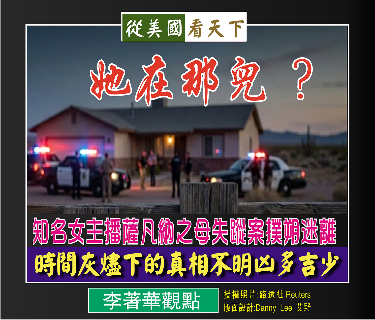 NBC電視「今日秀」(Today)知名女主持人薩凡納·格思里(Savannah Guthrie)之母–84歲的南希·格思里失蹤已逾六週,案情仍陷入膠著, 時間灰燼下的真相不明,這樁失蹤案的迷霧中,格外沉重而引人深思, 顯然是兇多吉少,生命如夢幻泡影,轉瞬即逝! 當一個人無端從世間蒸發,留下的,不僅是親友的無盡悲慟,更是社會對真相的渴望與人性的拷問。 六週,對於任何懸案而言,都足以讓最初的喧囂歸於沉寂,但對於受害者家屬,每一天都是煎熬。媒體的鏡頭或許已然轉向,執法部門的行動也從高調搜捕轉為靜默分析,然而,那份深埋在社區深處的疑問,那份對正義的期盼,卻如同潛流般,在時間的灰燼下暗自湧動。此案不禁讓人聯想到過往諸多懸而未決的失蹤案件。儘管細節各有不同,但其共同之處皆在於,一個生命的突然消失,如何撕裂了家庭的完整,又如何考驗著社會的耐心與司法體系的效率。這些案件往往在初期引發巨大關注,而隨著時間推移,調查進度陷入膠著,公眾的注意力也隨之分散。然而,真正的公平與正義,從不應受時間或關注度的影響。權威數據顯示,許多長期未解的失蹤案,其關鍵突破往往源於不起眼的線索,或是科技進步帶來的全新鑑識手段。例如,DNA技術的飛躍,已不止一次地重啟沉寂多年的冷案,為受害者帶來遲來的正義。在此案中,警方對DNA證據和錄像分析的聚焦,正是現代偵查手段的體現,也預示著真相的微光或許就在這些看似冰冷的數據中。然而,動機的缺失,卻是橫亙在破案道路上的一塊巨石。缺乏明確的動機,使得案件的輪廓模糊不清,也讓偵辦工作陷入了大海撈針的困境。許多辦案的專家認為,在類似的名人親屬失蹤案中,輿論壓力與公眾情緒往往成為雙刃劍,既能加速案件的推進,也可能因過度曝光而影響調查的公正性。莎凡娜·格思裡雖已回到紐約,卻仍與警方保持緊密聯繫,這不僅是為人子女的本能,更展現了一位公眾人物在面對個人悲劇時的堅韌與不屈。這份堅持,是黑暗中的一道光,提醒著所有參與者,勿忘初心,勿忘那個在時間洪流中等待答案的生命。此案不僅是對司法體系的一次考驗,更是對人性、社會責任與公眾良知的一次深刻叩問。歲月無聲,餘波未平。當南希·格思里的名字從媒體的頭條漸漸淡出,當公眾的喧嘩歸於平靜,此案的餘波,仍在人性的深處激盪。無數個日夜,家屬在等待,警方在追查,而那些未解的謎團,像一座無形的山,壓在所有關心此事的人心頭。這份沉寂,並非遺忘,而是在無聲中積蓄著對真相的渴求。無論案件如何艱難,無論時間如何流逝,對真相的追尋與對正義的信仰,永遠不應被放棄。每一個未解之謎,都是對人類智慧與毅力的一場考驗,也是對社會良知的一次深刻檢視, 我們衷心的期待南希·格思里老太太無論生或死,這個案子終能水落石出, 還原事實的真相。 Post navigation 李著華觀點:黑夜悲歌:古巴全國斷電缺能源難以為繼 百姓承受著強權下的悲哀