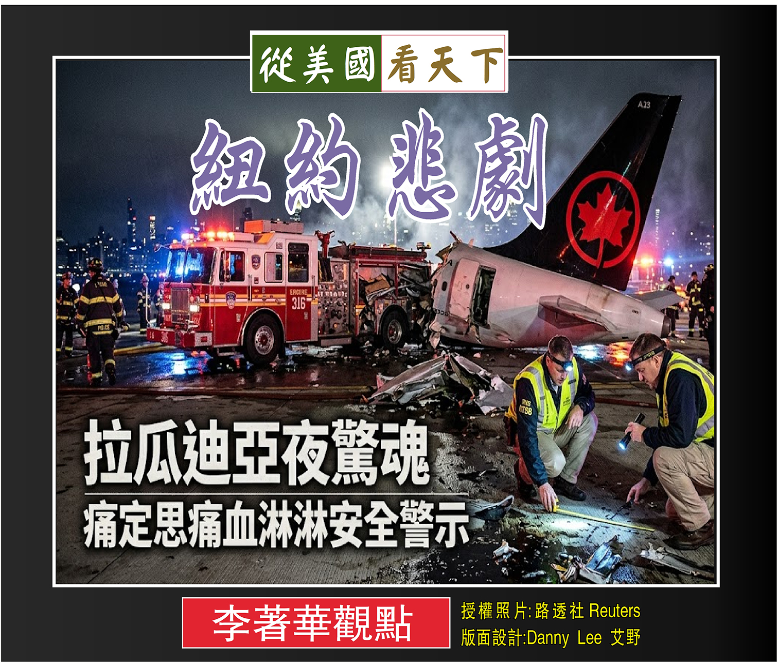 紐約拉瓜迪亞機場(LaGuardia Airport)發生了一起慘烈的人禍:加拿大航空(Air Canada)的一架客機在第4號跑道上,不幸與一輛消防車相撞。這起事故後果極其嚴重,兩名優秀飛行員當場罹難,另有十人受傷。原本應是用於保障安全的消防車,竟然成了致命的奪命工具,這不僅僅是數據的傷亡,更是數十個家庭的破碎與無數旅客行程的延誤,也再次將這座繁忙機場長期存在的系統性安全風險推向了風口浪尖。
