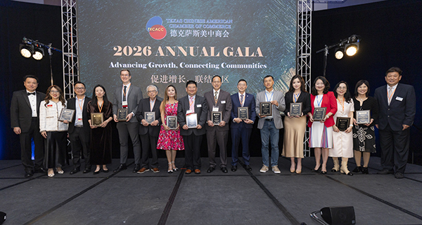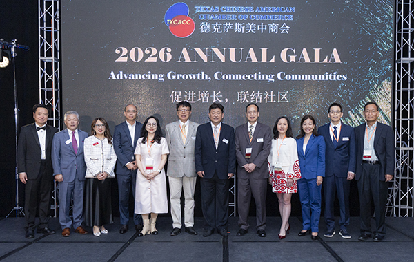 德克薩斯美中商會(Texas Chinese American Chamber of Commerce, TXCACC)於3月21日在 Hyatt Frisco 酒店隆重舉行2026年度晚宴。本次盛典彙聚了德州政商名流及社區精英,通過商業展會、貴賓招待會及正式晚宴等多元環節,吸引了逾600位賓客齊聚一堂,共同見證商會成立32周年的榮耀里程碑。