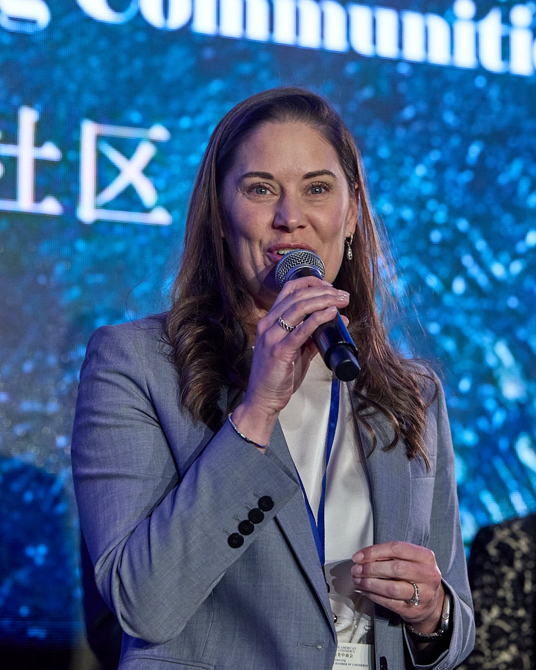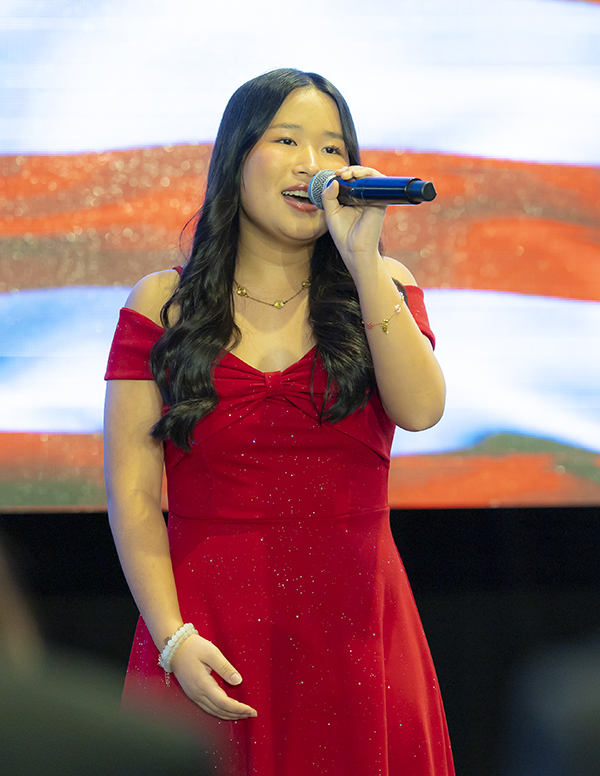 晚宴由 Emily Zhu 與 Young Po 主持,在2025年“水立方杯”中文歌曲大賽少年組金獎得主謝凱麗(Kaylee Xie)演唱的美國國歌中來開帷幕,為盛典奠定了莊重且熱烈的基調。大會聯合主席臧彤(Tong Zang)與 Peter Yan 首先致歡迎辭;德克薩斯美中商會會長 Tracy Li 在隨後的致辭中回顧了商會過去一年的豐碩成果,並向長期以來支持商會發展的社會各界致以誠摯謝意。