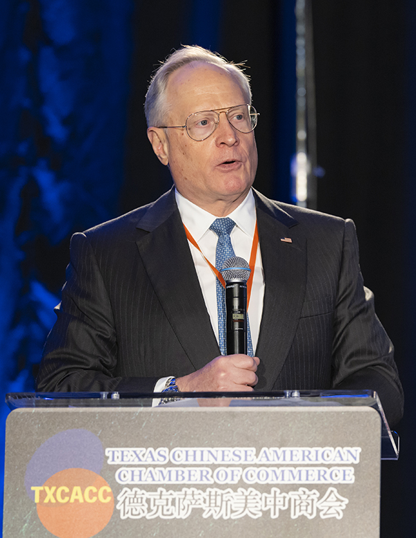 他充分肯定了德克薩斯美中商會在過去32年間,於達拉斯、美國與中國及世界之間架起的溝通橋梁。Perot 先生深入剖析了“德州經濟奇迹”,指出受國際都市化、金融中心南遷、醫療高地建設、華商卓越貢獻及優惠稅收政策等多重紅利驅動,北德州已成為國際經濟的核心地帶,而達拉斯-沃斯堡(DFW)正穩步邁向北美經濟中心。